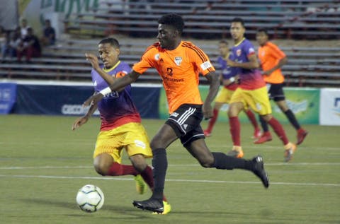 Jorge Alfonso Director Técnico del Cibao FC alineó con su portero estelar Miguel Lloyd en la protección del arco naranja.