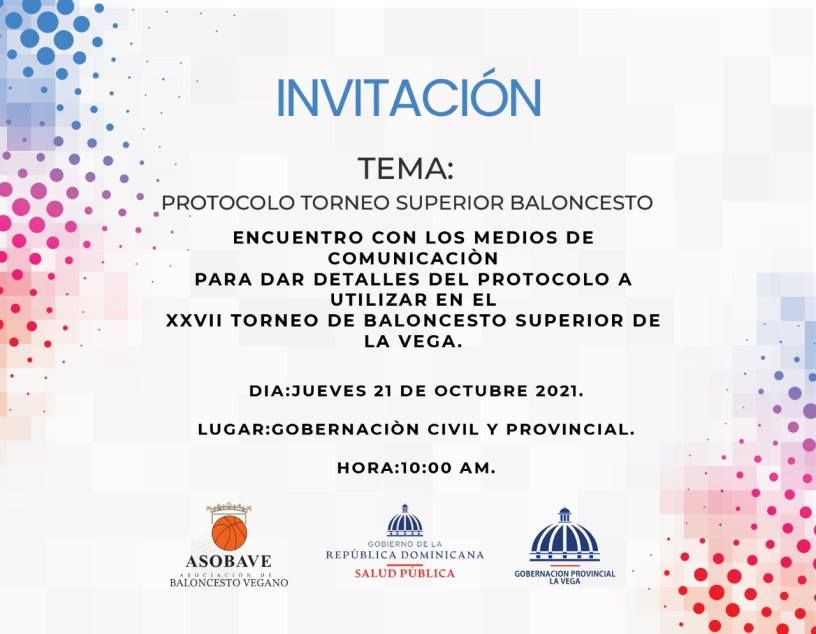 LA VEGA Asobave,Dirección Provincial de Salud y La Gobernación Civil y Provincial sostendrán encuentro con los medios. Fecha: 21 de octubre, 2021Autor/a: joseluisbautista74 0 Comentarios