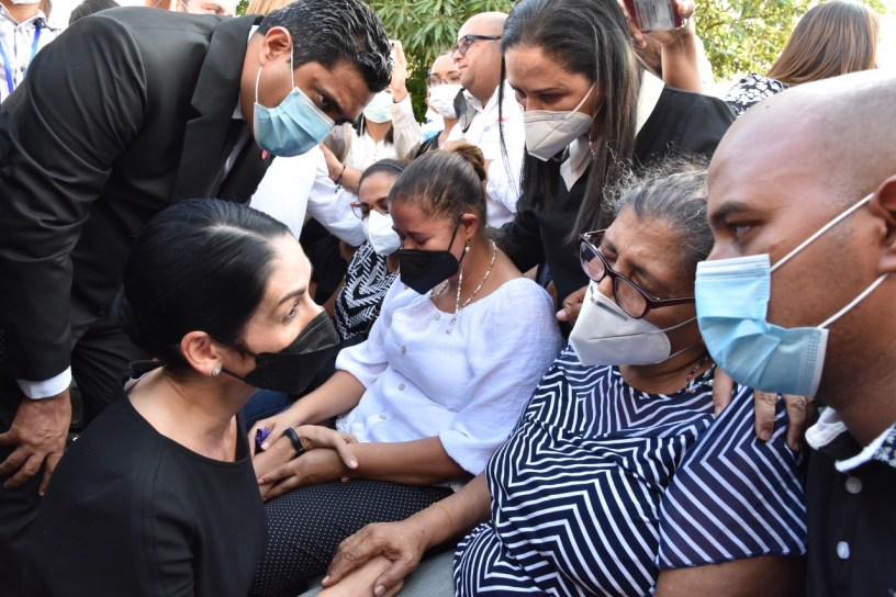 La Vega.-La primera Dama de La República Raquel Arbaje visitó esta ciudad para solidarizarse con los familiares de los caídos en el incendio de la emblemática empresa Casa Mora,los bomberos fallecidos fueron identificados como Juan María Concepción (Junior), Olvis Baría y José Luis Mojica,su deceso se produjo cuando un piso de la edificación se desplomó y los dejó atrapado según dijera el Coronel Bomberos Cesar Arturo Abreu.