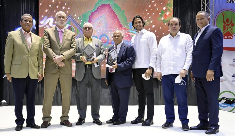 SANTIAGO DE LOS CABALLEROS, República Dominicana (31-10-2021).- El nadador, Josué Domínguez, recordista nacional e internacional y el narrador, Santana Martínez, fueron premiados como atleta y cronista deportivo del año, respectivamente, este domingo, en la gala anual de la Asociación de Cronistas Deportivos de Santiago (ACDS) y Banreservas, realizada en la Gran Arena del Cibao, doctor Oscar Gobaira.