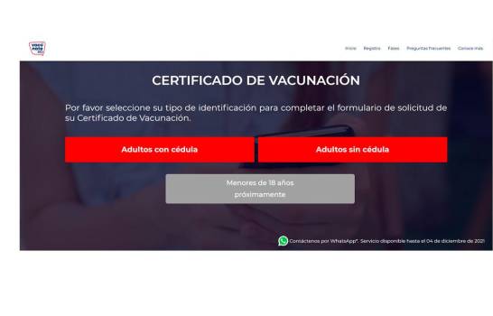 Paso 2: En la parte inferior elegir si es un adulto con cédula o sin cédula. Actualmente el servicio solo está disponible para personas mayores de 18 años.