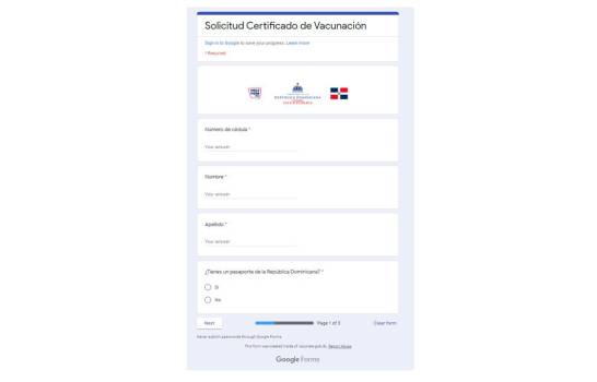 Paso 3: Automáticamente serás redirigido a un formulario que deberás completar con tu nombre, cédula y responder si tienes pasaporte.