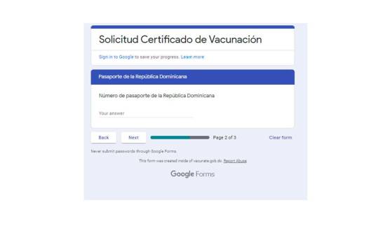 Paso 4: Si tu respuesta al pasaporte es afirmativa, entonces se te abrirá una nueva pregunta para que coloques el número de tu documento. Este paso solo será llenado por las personas que hayan marcado sí a la pregunta anterior.