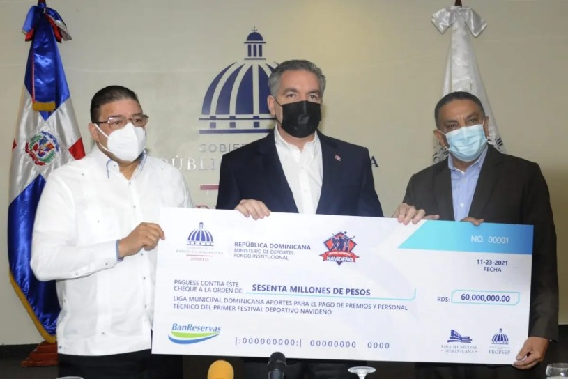 El Gobierno dominicano entregó ayer una primera partida de 60 millones de pesos para la celebración del primer Festival Deportivo Navideño 2021, a realizarse del 26 de este mes al 19 de diciembre, con actividades en los 158 municipios del país y 52 millones de pesos en premios.