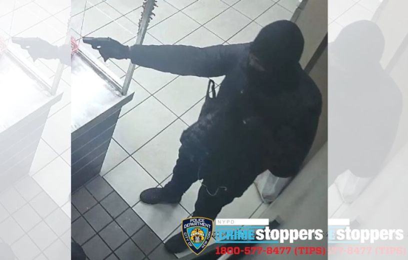 Imágenes de vigilancia del interior del local muestran al delincuente apuntando con un arma al personal a eso de las 12:45 a.m.