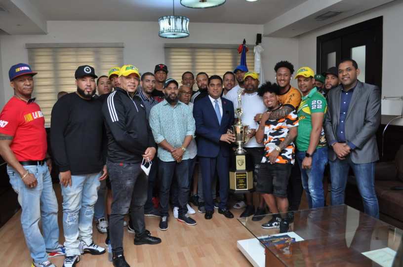 La Vega.-El Alcalde Vegano Kelvin Cruz y Presidente de Fedomu hizo entrega de un aporte de 250,000,00 pesos distribuidos en los gerentes de los cuatro equipos y el comitè Organizador,el Alcalde de La Vega recibiò en su despacho a los Antiguos actuales campeones,comitè organizador y gerentes del Baloncesto Carnavalesco Vegano.