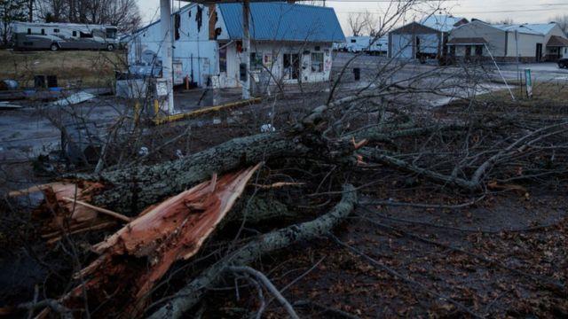 «Hay daños extensos en los sitios donde el tornado tocó tierra», indicó Pohlman en una conferencia de prensa durante la noche. «Hay daños grandes en múltiples estructuras en esa área».