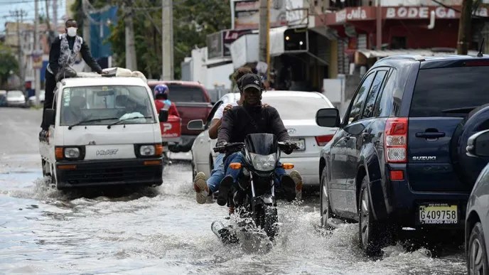 Santo Domingo Oeste: Nublado en la tarde con aguaceros, tormentas eléctricas y ráfagas de viento.