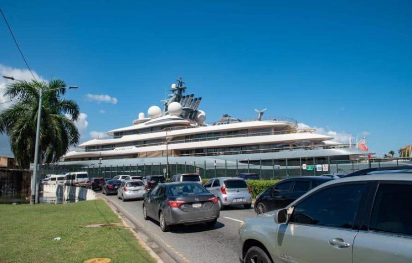 El lujoso yate Flying Fox atracó el 21 de marzo en el puerto Don Diego, en Santo Domingo, y hasta la fecha no ha salido del país.