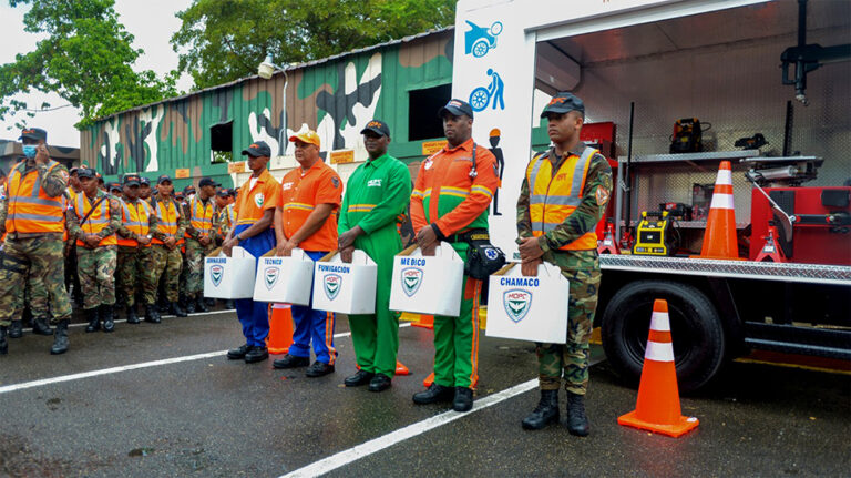 El ministro de Obras Públicas, Deligne Ascención, entregó dos camiones talleres-móviles, así como equipos de avituallamiento, mochilas y otras utilerías a la Comisión Militar y Policial (COMIPOL), para reforzar los servicios de asistencia vial en autopistas y carreteras durante el asueto de Semana Santa.
