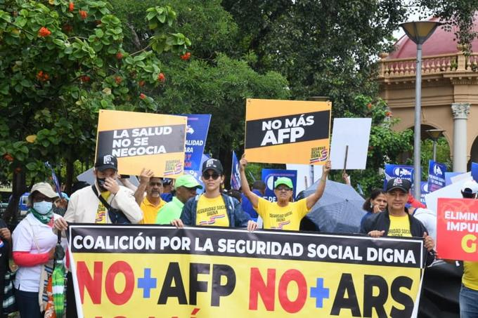 “Hoy es el día de la clase trabajadora dominicana y del mundo, aquí hay una congregación de diferentes sectores, se piden salarios más dignos, sacar las Asociación de Fondos de Pensiones y Aseguradoras de Riesgos de Salud de la seguridad social y se les pase a la ciudadanía, bajar el costo de la vida, la soberanía alimentaria, seguimos aunando a sectores creciente de la población para lograr que la seguridad social sea un derecho y no un negocio”, explicó Bosch Carruco.