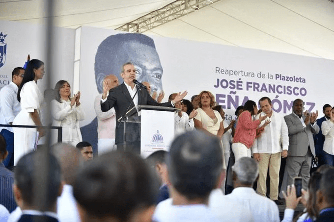 Bajo la consigna “cuatro años más” por parte de los comunitarios, el presidente Luis Abinader encabezó la reapertura de la plazoleta José Francisco Peña Gómez a propósito de cumplirse 24 años de fallecido este 10 de mayo.