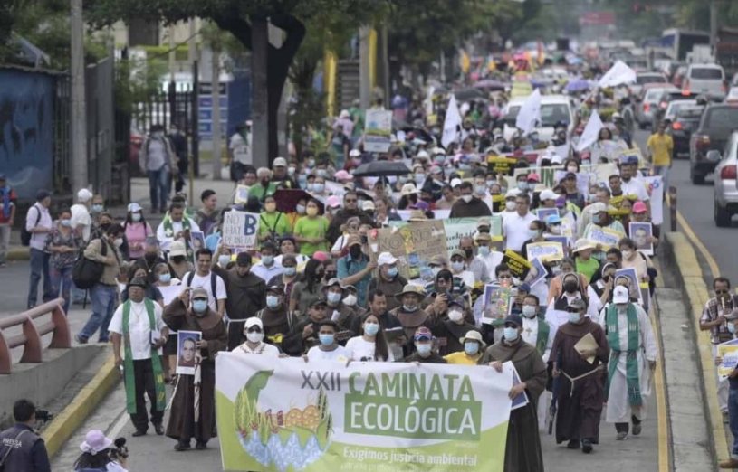 Un millar de ecologistas salvadoreños marcharon este martes en reclamo de protección del medio ambiente ante proyectos que amenazan su estabilidad, entre ellos “Bitcoin City”, que el gobierno planea construir en el oriente del país.