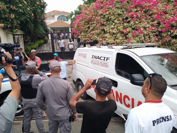 A eso de las 8:40 de la mañana, todavía el cuerpo estaba frente a su residencia en medio de un fuerte contingente policial y de periodistas, fotógrafos y camarógrafos, en espera de las autoridades judiciales.