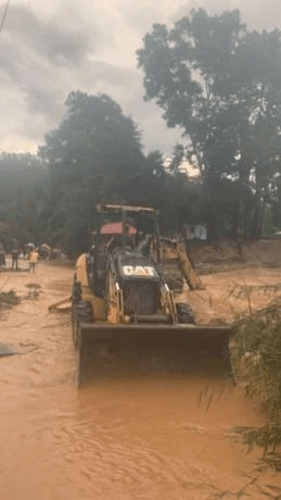 Fuertes lluvias han causados desbordamiento del Rio Yaque del Norte donde se ha producido que varias comunidades estén incomunicada al Distrito Municipal de Manabao,Jarabacoa.