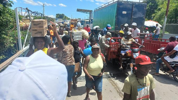 En medio de la tensa situación que se vive en la frontera dominico-haitiana, debido a las manifestaciones de protestas en los pueblos del norte y nordeste de Haití, este jueves cientos de haitianos cruzaron a la ciudad de Dajabón a abastecerse de alimentos y otros tipos de mercancías, bajo estricta vigilancia por parte de las autoridades dominicanas.
