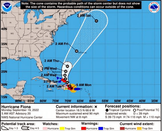 El huracán Fiona tocó tierra este lunes en las costas de República Dominicana, tras causar estragos en Puerto Rico, anunció el Centro Nacional de Huracanes de Estados Unidos (NHC).