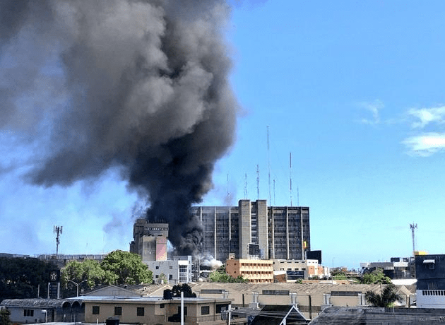 Una extenuante humareda envolvió la mañana de este viernes el edificio de oficinas gubernamentales Juan Pablo Duarte, conocido popularmente como en el «Huacal» luego de un cortocircuito ocurrido en el piso 14.