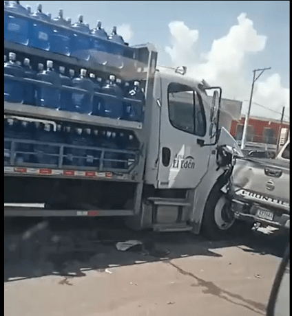 Un vídeo remitido a este periódico muestra como en horas de la tarde un camión de agua impactó por detrás a una camioneta que a su vez chocó un carro y este a otra camioneta.