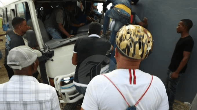La guagua, con la placa I045397 y que habría salido desde Boca Chica, perdió el cristal frontal.