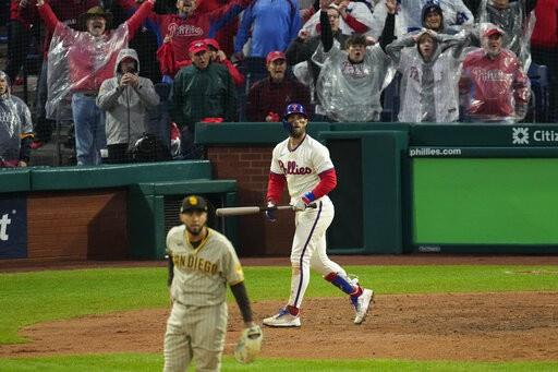 Bryce Harper despachó su quinto jonrón de la postemporada, un batazo de dos carreras en el octavo inning que transformó el Citizens Bank Park en un manicomio, y el toletero con el contrato de 330 millones de dólares cargó el domingo a los Filis de Filadelfia a la victoria 4-3 sobre los Padresde San Diego y el pase a la Serie Mundial por primera vez desde 2009.