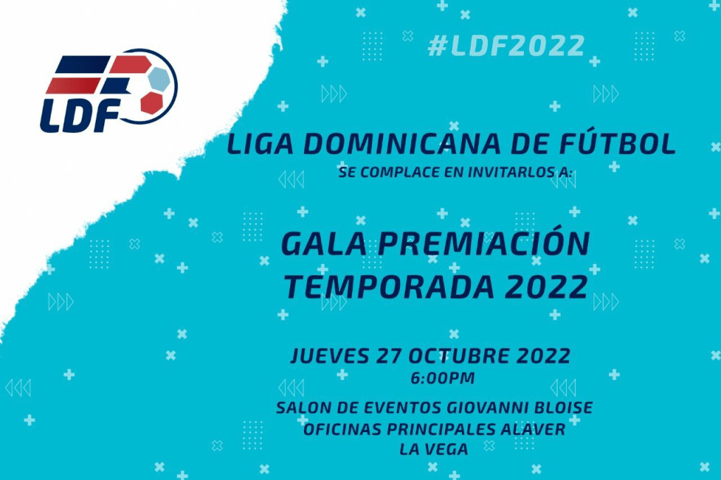 La Liga Dominicana de Fútbol (LDF) celebrará el próximo jueves 27 de octubre a las 6.00 de la tarde la gala para reconocer a los más destacados de la temporada 2022, el evento tendrá lugar en el salón de eventos Giovanni Bloise de la Asociación Alaver en la ciudad de La Vega.