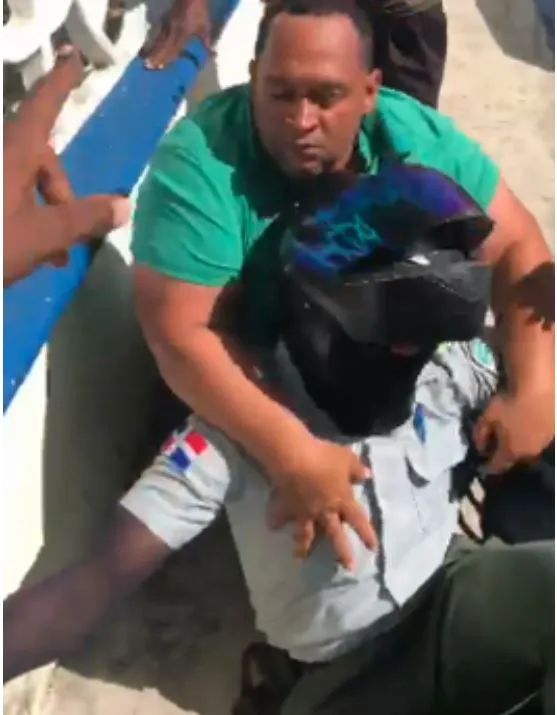 El síndico le dijo: “Abusador…, ese hombre lo que está es trabajando, quédese con la guagua, con el cemento que tiene ahí, pero no lo retenga hasta las 6:00 de la tarde”, sin embargo, entre el forcejeo, el motor cayó encima del agente y el síndico lo sujeta.