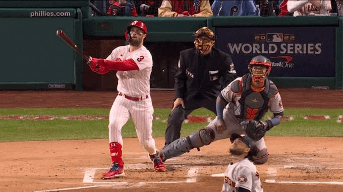 Los jonrones de Harper sacuden el estadio hasta el punto de que deberían medirse en la escala de Richter en lugar de en pies, y en estos días parecen tan automáticos como un giro de Phillie Phanatic en su vehículo todo terreno. Harper ha pegado cuatro jonrones de postemporada que dieron a los Filis la ventaja y demostraron que, sí, Bryce Bombs explota en noviembre, la primera vez que se jugarán más juegos de la Serie Mundial en este mes que en octubre.