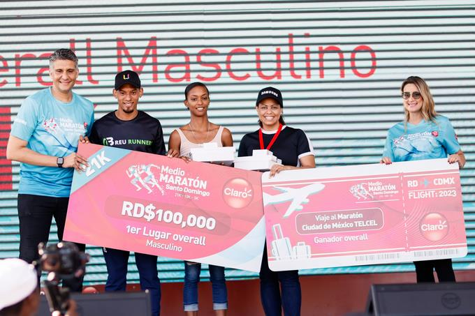 Los ganadores overall de la distancia de 21K del medio maratón Claro, Amauri Rodriguez y Soranyi Rodríguez, obtuvieron automáticamente un pase con todos los gastos pagos para participar en el reconocido Maratón Telcel 2023 de la ciudad de México, noveno del mundo y con categoría Oro de la Asociación Internacional de Federaciones de Atletismo (IAAF).