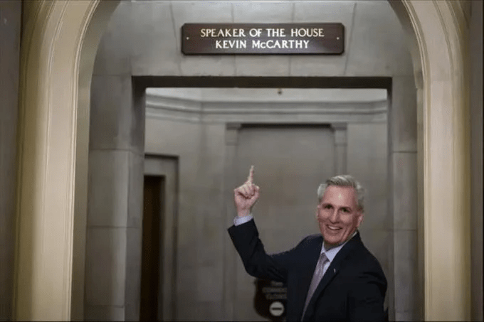 McCarthy soportó una dura lucha de una semana para llegar aquí, la elección de un orador como ningún otro desde la víspera de la Guerra Civil. Una coalición de 20 reticentes se negó a apoyar su presidencia a menos que cediera a sus demandas de ceder algo de poder. Se vio obligado a pasar por 14 papeletas antes de que finalmente ganara una mayoría en la 15ª votación, pero no antes de que la caótica escena final de gritos entre aliados y reticentes retrasara la votación hasta la madrugada del sábado.