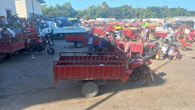 En el lugar donde se colocan regularmente los camiones cargados de huevos, se ubicaron las motocicletas de tres gomas con un cajón que usan los haitianos para llevar a su país los productos que adquieren en territorio dominicano.