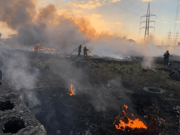 Un miembro de una de las ocho unidades que trabajan en diferentes puntos para sofocar el fuego del terreno cercado, en el que lucen grandes cantidades de neumáticos para carros y vehículos de cuatro ruedas, dijo al LISTÍN DIARIO que no es la primera vez que acontece algo similar en el mismo lugar.
