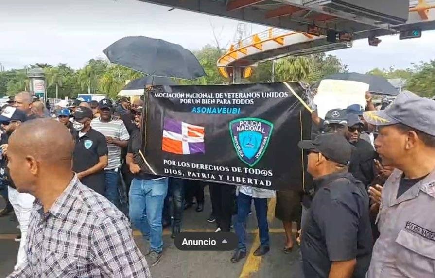 Miembros de la Asociación Nacional de Veteranos Unidos por un Bien para Todos se apostaron la mañana de este lunes en las inmediaciones de la avenida 27 de Febrero esquina Máximo Gómez para exigir indemnización, mejoras salariales y en el seguro de salud.