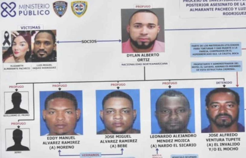 Los demás vinculados son los hermanos Eddy Manuel y José Miguel Álvarez Ramírez, residentes frente al lugar donde hallaron los cadáveres. También, Guillermo «el Primo», Jefry, Leonardo Alejandro Méndez Mojica, quien rentó la yipeta, y José Alfredo Ventura Tupete, dueño del hotel donde mataron a la pareja y único detenido por el caso.