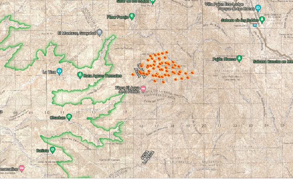 Aunque el Ministerio de Medio Ambiente ha explicado que se inició en la zona de amortiguamiento, los mapas satelitales de calor indican que todo inició dentro del área protegida a más de kilómetro y medio del límite oeste de este importante parque, en lo que se conoce Agua de la Piedra.
