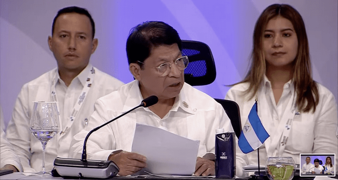 «Exigimos al presidente Boric, de Chile, respeto para el Gobierno y el pueblo de Nicaragua», pidió el canciller nicaragüense, durante su intervención.