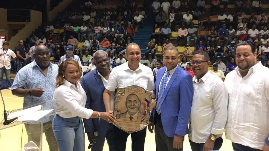 Durante el acto de ceremonia de inauguración, Eliot Durán, presidente de la Asociación de Baloncesto de San Pedro de Macorís (Abasapema), de manera conjunta con el diputado Luis Gómez Benzon, quien encabeza el Comité Organizador, entregaron un reconocimiento a un ilustre hijo de la Sultana del Este, el doctor Nelson Arroyo, director de Indotel).