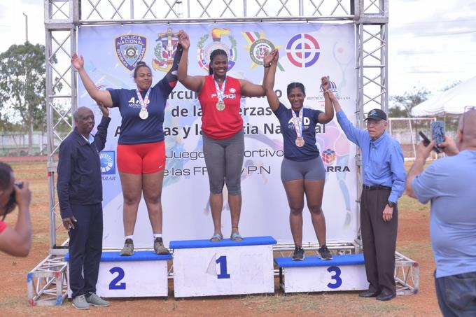 Luis Manuel Ramirez se impuso en lanzamiento del disco con marca de 52.74, seguido por el guardia Julio Rijo (44.41) y el piloto Lisandro Ozoria (41.88). En lanzamiento de martillo los medallistas de oro, plata y bronce fueron Anthony Santana (FARD), el marinero Estarlin Martes (48.70) y el policía Franklin Adames (48.61).