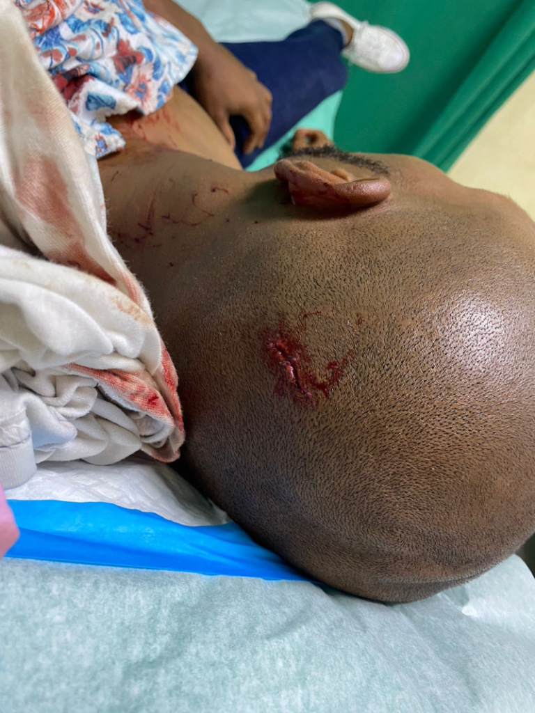 Guary Cuevas fue golpeado en la cabeza mientras se defendía de varias personas que se oponían a que realizara vistas en la avenida John F. Kennedy esquina Máximo Gómez, de esta capital.
