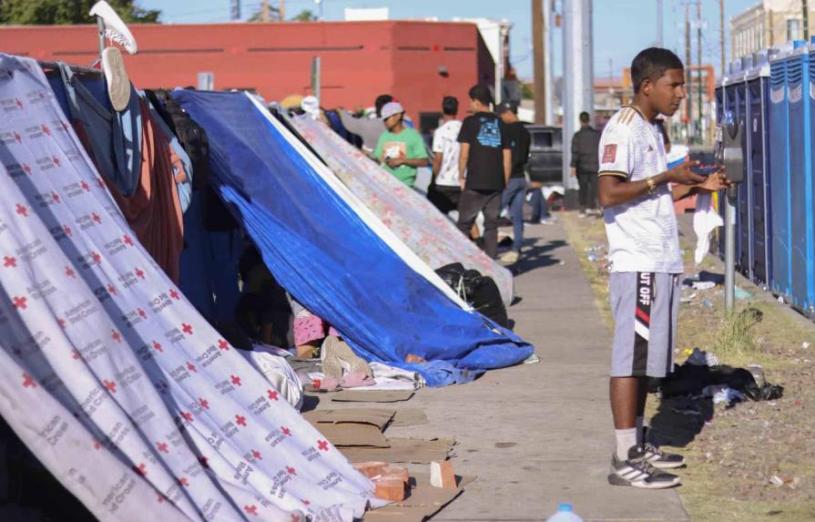 En El Paso, Texas, cerca de 2,200 migrantes acampan o viven en las calles a pocas cuadras de los principales cruces fronterizos que la conectan con Ciudad Juárez, México. El Paso se prepara para abrir albergues la próxima semana, en caso de ser necesario, en dos edificios escolares vacíos y un centro cívico.