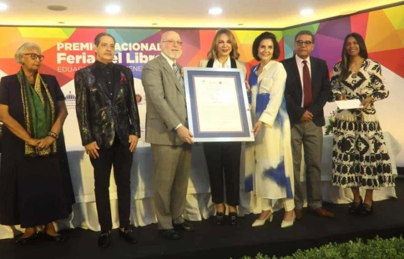 El escritor, poeta, ensayista, profesor, articulista y diplomático Pedro Vergés recibió el Premio Nacional Feria del Libro Eduardo León Jimenes 2023 por su obra «Yo ya estaré lejos».