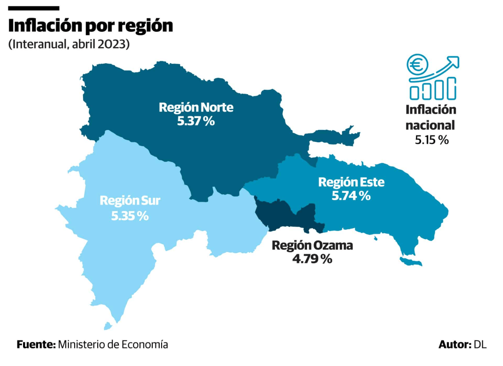 La región Ozama tuvo una reducción de la inflación de 4.79 % para este período, 36 décimas por debajo de la media nacional, que se situó en 5.15 %.