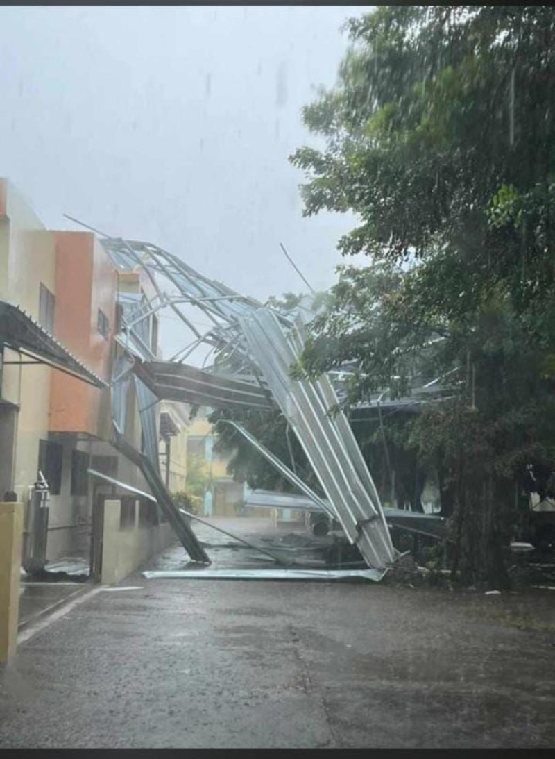 Se reportaron daños severos al techo del segundo nivel del Politécnico Sagrado Corazón de Jesús, en el sector Don Bosco y a viviendas ubicadas en la Villa Olímpica, Las Trescientas y en otros sectores de la provincia.