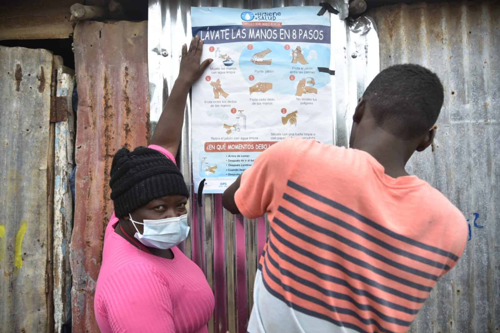 El director interino de la Provincial de Salud, Edwin Batista, encabezó el operativo casa a casa, donde también brindaban orientaciones sobre las medidas de higiene para evitar contagios de cólera, incluyendo afiches en español y creole, por la gran cantidad de personas de origen haitiano que allí reside.
