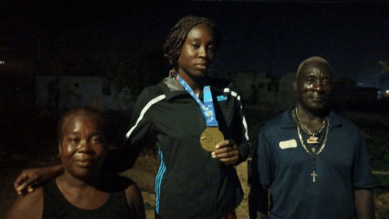 La odisea para llegar al barrio Cumajón en lo profundo de Villa Hermosa en esta ciudad, se compensa al conocer el sueño de una atleta de salto que nos acaba de dar una presea de oro en los Juegos Centroamericanos celebrados en El Salvador.
