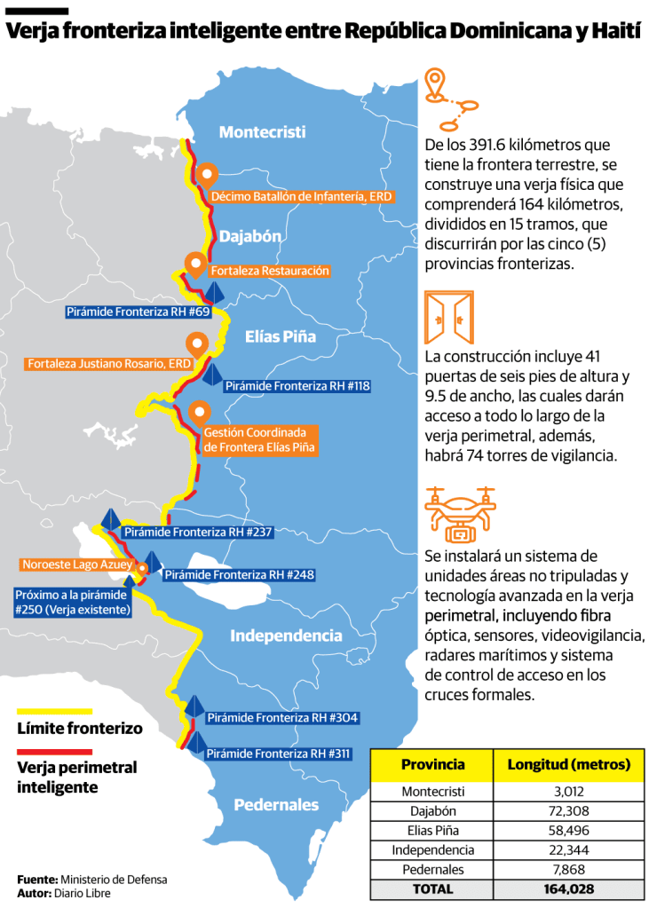 Los kilómetros de verja fronteriza estarán divididos en 15 tramos que recorrerán cinco provincias: Montecristi, Dajabón, Elías Piñas, Independencia y Pedernales.