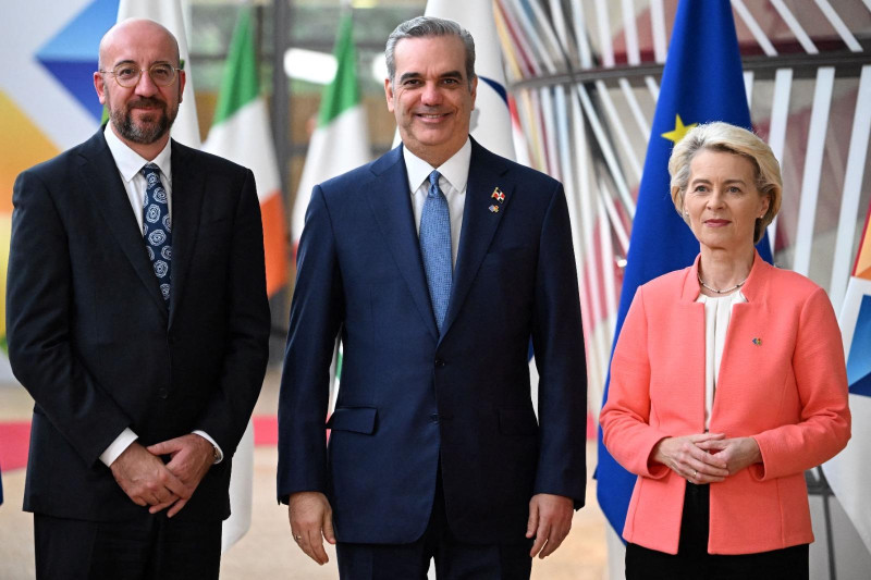 Previamente Abinader intercambió saludos y conversó por breves minutos con el presidente del Consejo de la Unión Europea, Charles Michel; el presidente del gobierno de España, Pedro Sánchez, y el presidente de Francia, Emmanuel Macron, entre otros líderes presentes en la Cumbre.