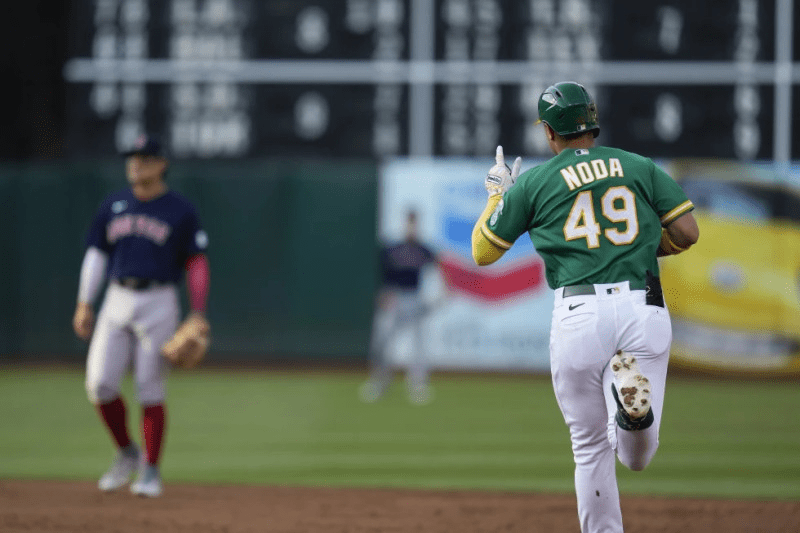 Ryan Noda y JJ Bleday consiguieron vuelacercas respectivos en el segundo inning, para guiar el martes a los Atléticos de Oakland a un triunfo de 3-0 sobre los Medias Rojas de Boston, con lo cual cortaron una seguidilla de ocho derrotas.