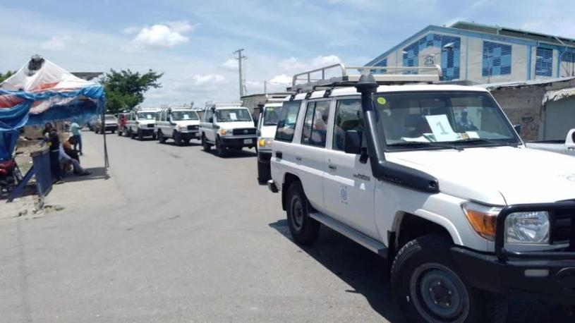 Los representantes de la ONU llegaron a territorio dominicano en vehículos todo terreno.