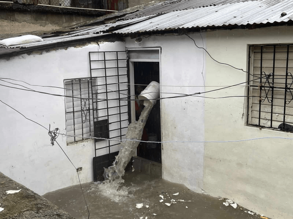 Vistos por reporteros de Diario Libre, en el sector Villa Carmen, también algunos se «gozaron» los aguaceros frente a un colmadón, mientras familias vecinas se pasaron toda la mañana sacando el agua que penetró a sus viviendas en ese mismo sector.